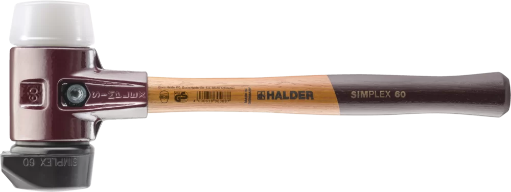 Simplex-Schonhammer 60 mm Gummi schwarz, Plastik weiß m. Standfuß